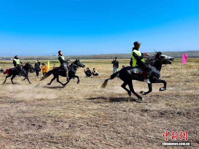 9月19日,位于Chingai湖北海岸的Chingai省HAI湾的自主县的人们聚集在草原上,庆祝收获,并通过流行的文化和体育活动,例如斗牛,赛马和Camel Racing。 Li Jun照片